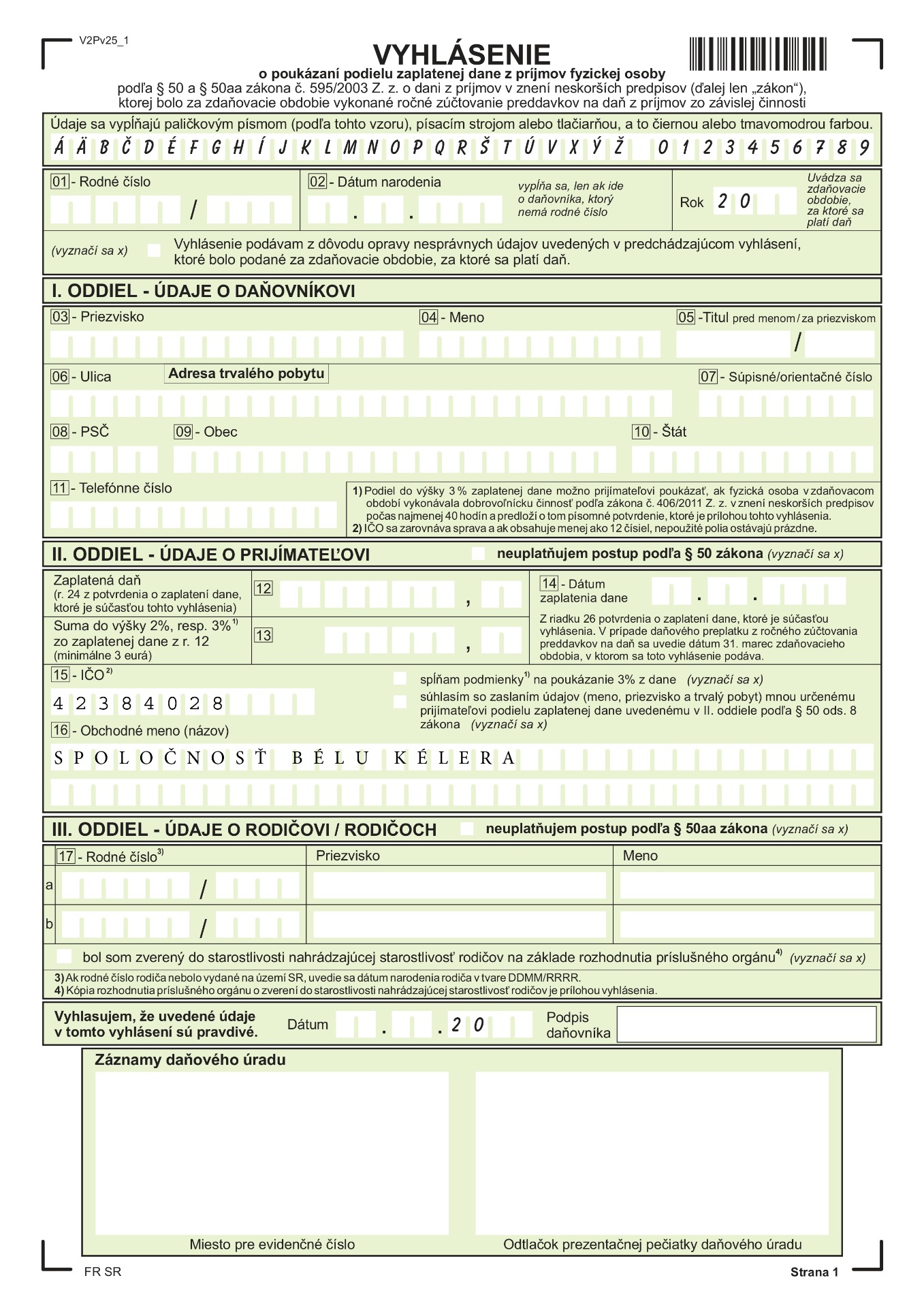 bankový účet: Fio banka IBAN: SK33 8330 0000 0025 0070 3828